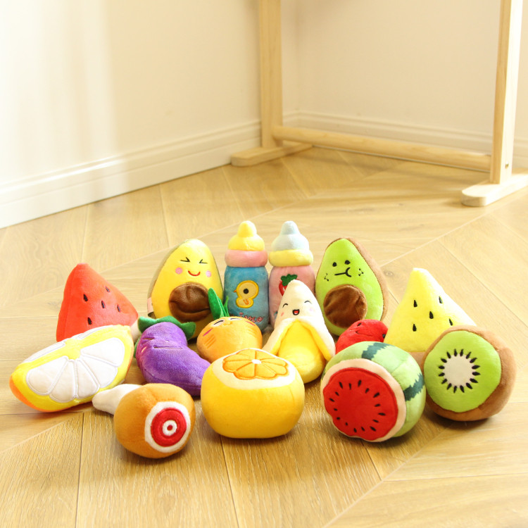 Pomdsds | Plush Fruit & Vegetable–Style Puppy Toy with Gentle Sound, Everyday Play for Small Dogs